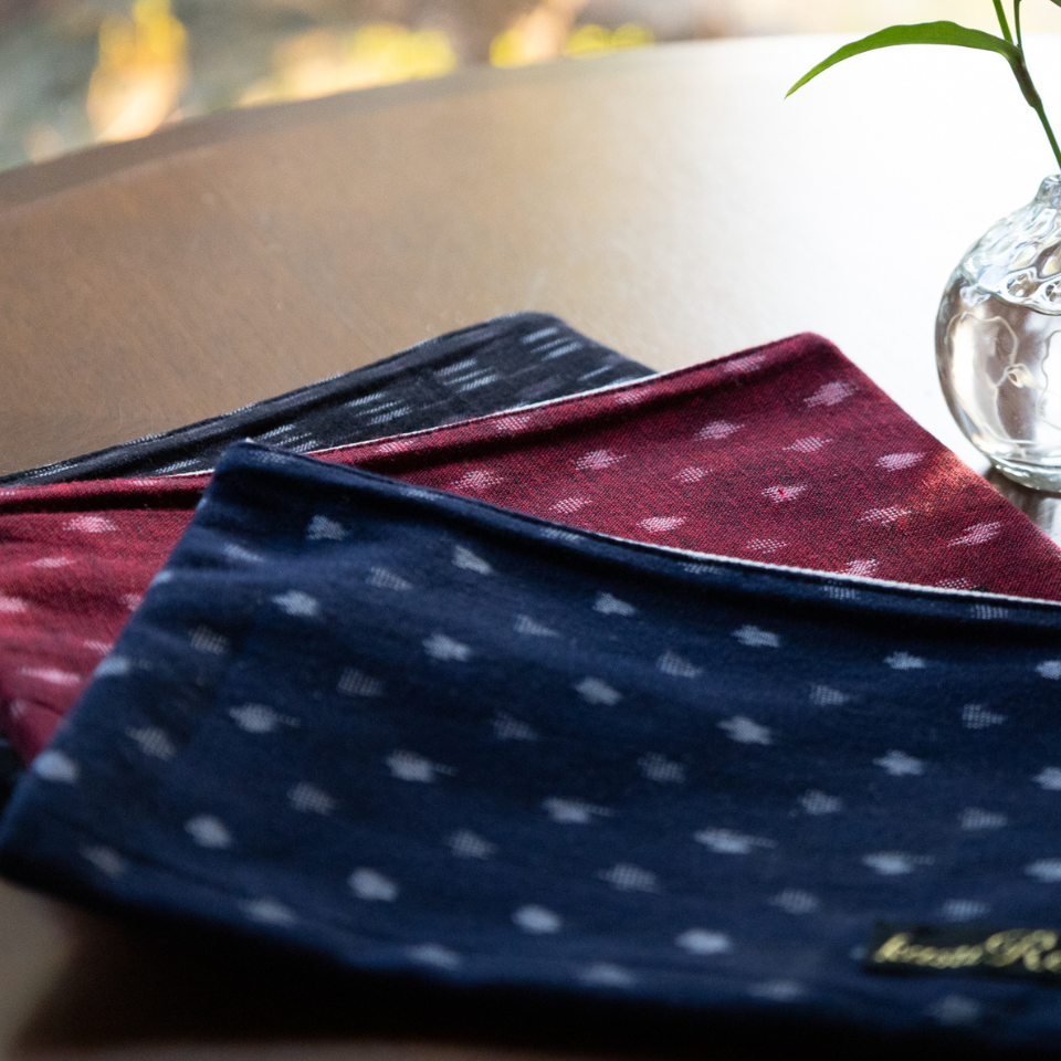 この商品は久留米絣(くるめがすり)の製造工程でどうしても出てしまう「規格外のハギレ」を使用しています。 美味しいのに捨てられてしまう「規格外野菜」と同じように今世に出ている衣類を大事にすることで環境負荷を抑えます。